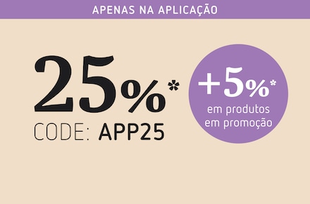 Compra na aplicação e poupa 25%* + 5%* em produtos em promoção